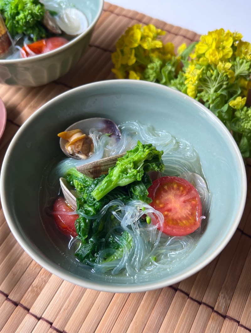 「浅利」は肝の機能を高め、老廃物の排出を助け、すっきり巡りを整えてくれます。解毒作用がある緑豆でつくられた「春雨」を選ぶと、熱っぽい時におすすめです。